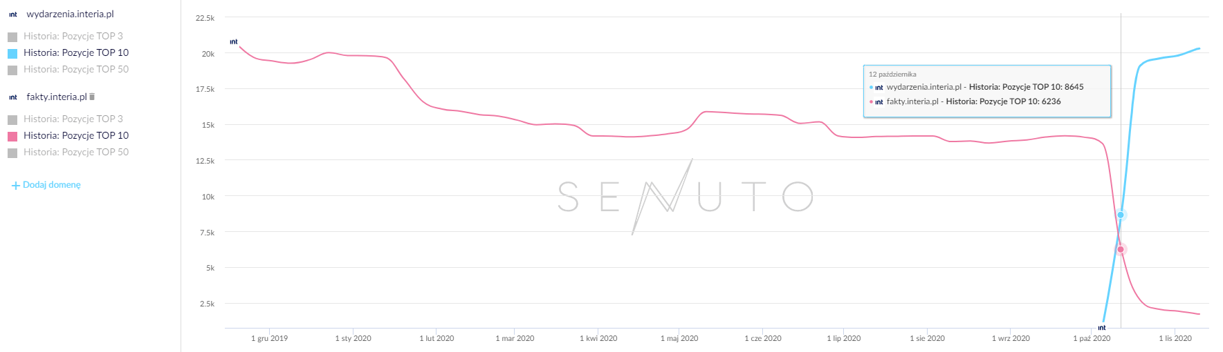 Poprzez przekierowanie 301 – interia odrobiła spadki widoczności, które miały miejsce od stycznia 2020.