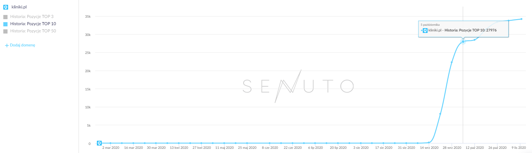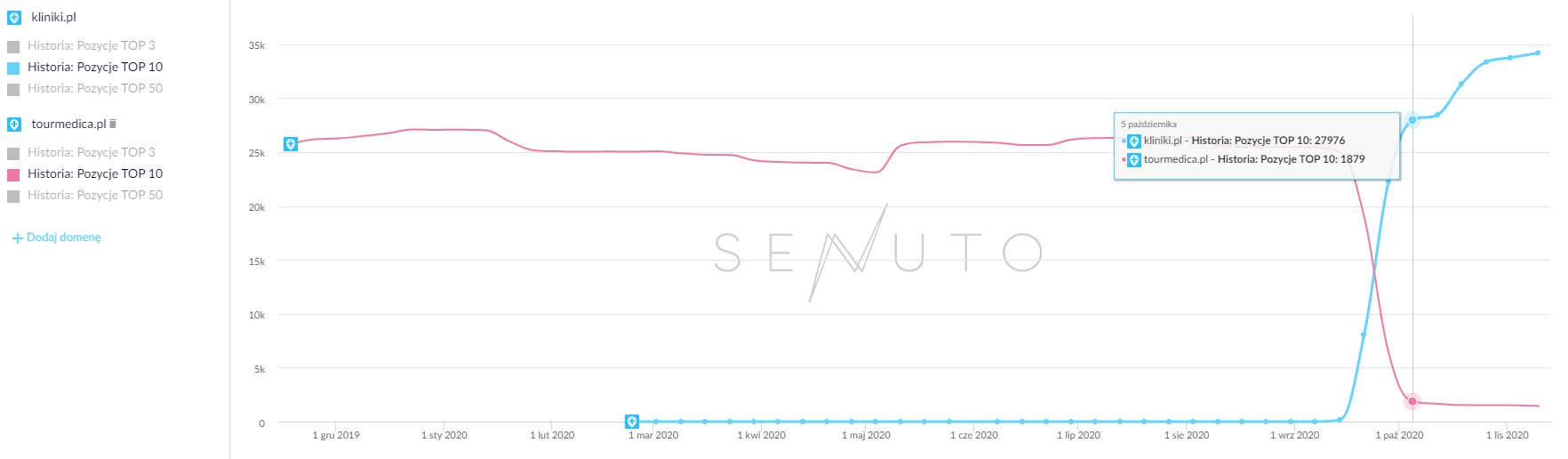 Spradźmy także, jak te działa wpłynęły na przejście widoczności z domeny tourmedica.pl na kliniki.pl: