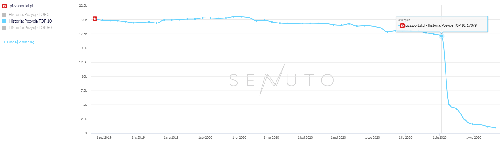Spadek nastąpił po 3 sierpnia i wynika z przekierowania domeny na inny e-commerce: