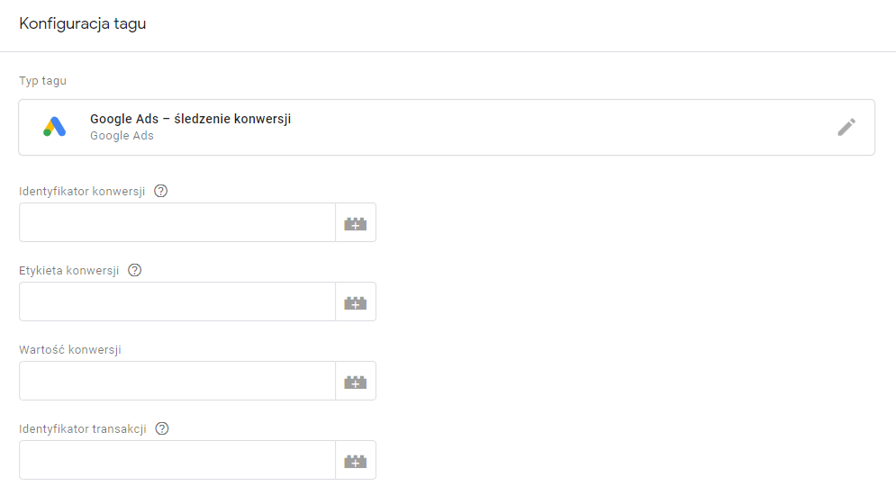 Oczywiście również wspólnie przeszliśmy konfigurację tagów Google Ads, w tym tag związany z zakupem – konfigurując odpowiednio identyfikatory, etykiety konwersji oraz ID i wartość zamówienia.