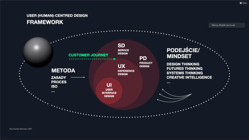 Drugi blok dotyczył projektowania usług (z angielskiego service design). Service design to technika projektowania i zarządzania usługą oraz produktem. Klient na styczność z usługą na kilku płaszczyznach – na tak zwanych punktach styku. Wychwycenie tychże punktów, ich mapowanie oraz odkrycie momentów prawdy pozwala na tworzenie optymalizacji, ulepszanie usług, co oczywiście przekłada się na większe zyski firm i bardziej zadowolonych klientów. Moment prawdy – to kluczowy punkt, w którym możesz podjąć działanie, aby zmienić doświadczenie klienta i wyróżnić markę.