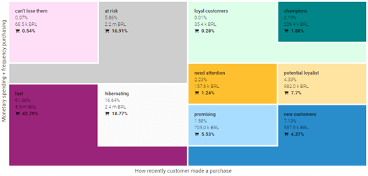 Segmentacja to proces podziału klientów na grupy w oparciu o ich zachowania i zainteresowania. W edrone stosujemy w tym celu najbardziej zaawansowaną analizę RFM, która uwzględnia, kiedy klient dokonał ostatniego zakupu, jak często robi i zakupy i jakie kwoty wydaje. Te dane pozwalają systemowi podzielić Twoich klientów na 10 segmentów, na przykład tych, którzy kupują dużo i regularnie, albo tych, którzy kiedyś kupowali często, ale ostatnio pozostają nieaktywni. Segmentacja pozwala Ci nie tylko poznać Twoich odbiorców i zobaczyć, których jest najwięcej ale też, co najważniejsze, dopasować przekaz do odpowiednich grup w oparciu o ich charakterystykę. I to jest właśnie personalizacja.