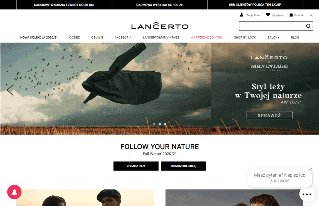 Każda relacja działa w dwie strony. Skoro Ty prowadzisz tak intensywną komunikację na swojej stronie, musisz być gotowy na to, aby dać klientowi możliwość skontaktowania się z Tobą. I tutaj doskonale sprawdzi się widżet chatu. Za każdym razem, kiedy klient będzie miał pytania lub wątpliwości dotyczące danego produktu lub zamówienia, będzie mógł skontaktować się z Twoim działem obsługi bezpośrednio przez stronę Twojego sklepu.. W ten sposób budujesz prawdziwe relacje z klientem i pokazujesz, że służysz pomocą.