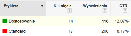 Dzięki użyciu Dostosowań w reklamach dla klienta z branży turystycznej udało nam się znacząco podnieść CTR w większości grup reklamowych. W kampanii znajdują się bardzo precyzyjne słowa kluczowe ze ściśle dopasowanymi reklamami tekstowymi, kierujące na podstronę wybranej oferty hotelowej. Porównanie CTR standardowych reklam tekstowych i reklam z dostosowaniami danych pokazało, że współczynnik klikalności w reklamach z Dostosowaniami wzrósł o około 25 %.
