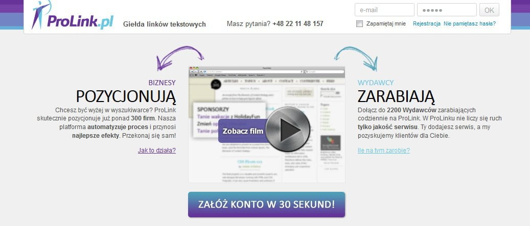 ProLink.pl jest giełdą kupna i sprzedaży linków tekstowych. Funkcjonuje dzięki wydawcom stron, którzy udostępniają powierzchnię reklamową w postaci linków, a także pozycjonerom, którzy płacą za umieszczenie linków na stronie wydawców.