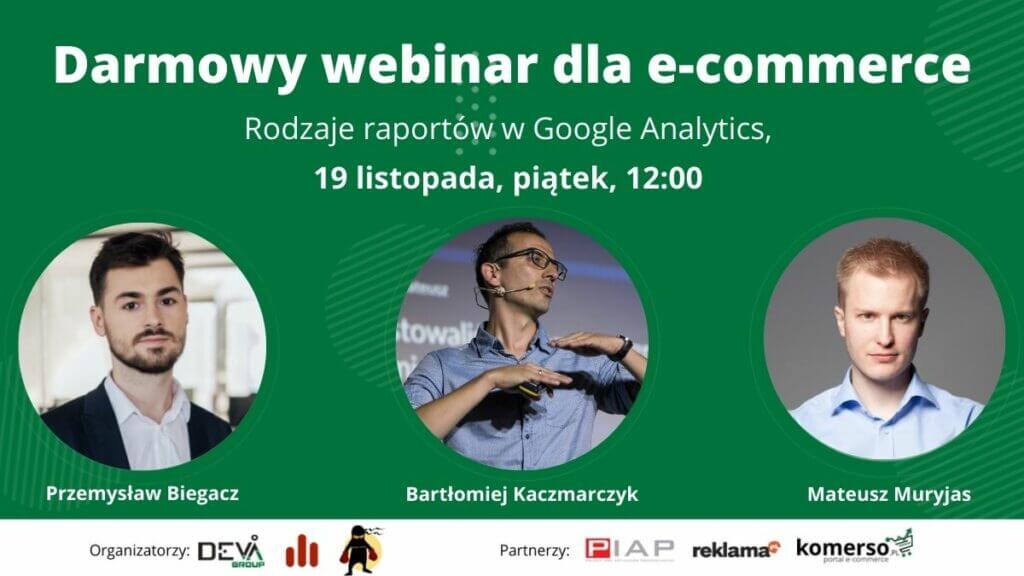 Następny z naszych webinarów stanowi skondensowaną paczkę wiedzy na temat raportowania w Google Analytics. Na spotkaniu online zobaczycie się z Przemysławem Biegaczem (DevaGroup), Bartłomiejem Kaczmarczykiem (sssem.Ninja) oraz Mateuszem Muryjasem (Analityczny). Nasi prelegenci zagłębią się w temat raportowania w Google Analytics i wskażą wam wszelkie ułatwienia, które możecie zastosować w waszej pracy z raportami w zakładce „Eksplorowanie” na czele.