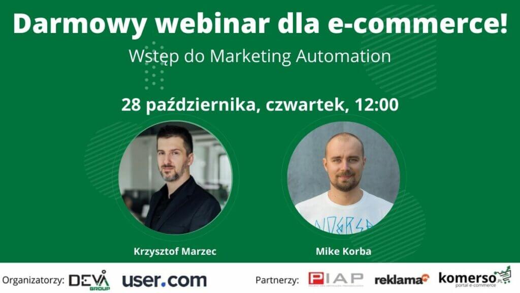 Drugi z darmowych webinarów zaplanowanych na październik przybliży wam temat Marketing Automation. Prelegenci Krzysztof Marzec (DevaGroup) i Mike Korba (User.com) opowiedzą o nowinkach i najbardziej innowacyjnych rozwiązaniach związanych z automatyzacją biznesu.