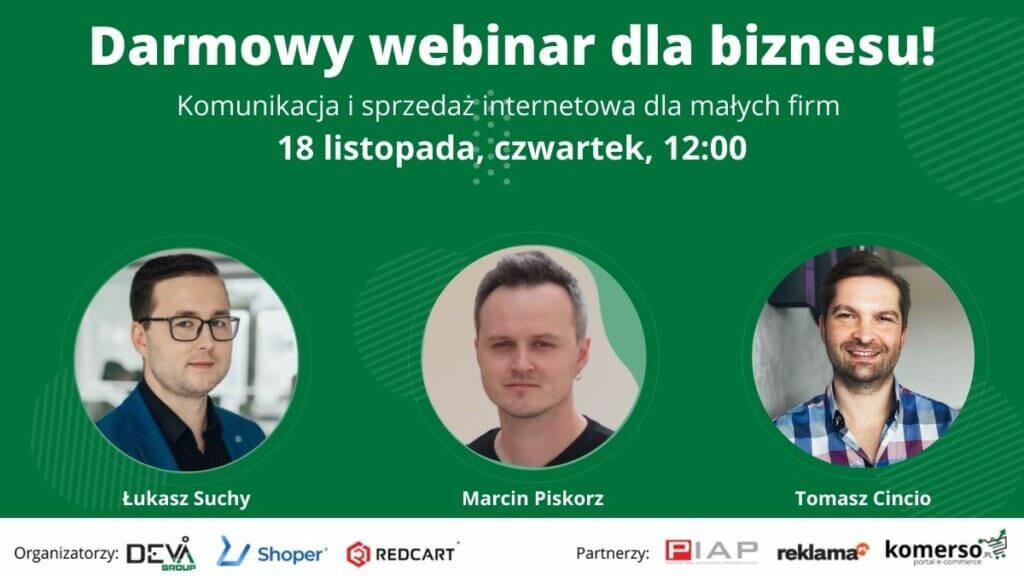 W listopad wejdziemy z myślą o małych firmach. Wśród prelegentów znajdą się tym razem Łukasz Suchy (DevaGroup), Marcin Piskorz (Shoper) oraz Tomasz Cincio (RedCart). Nasi eksperci zdradzą wam, czym charakteryzuje się sklep internetowy przyjazny klientowi. Podzielą się też wiedzą z zakresu SEO dla małych firm i biznesów.