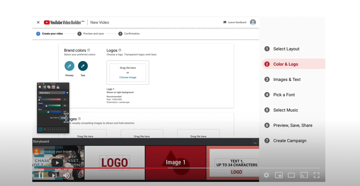 - Video Builder pozwala budować kreacje na podstawie zdjęć, treści, muzyki.